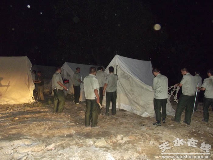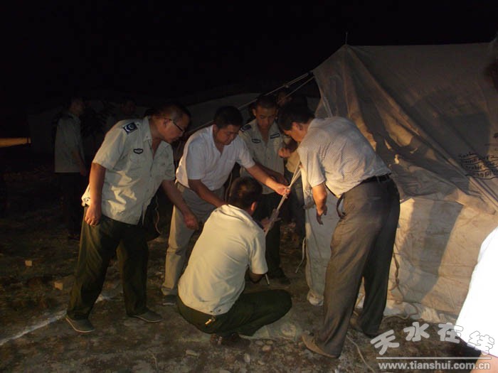 近来的持续强降雨使得中梁乡马周村山体出现裂口,对该村村民的生命造成了严重威胁。秦州区综合执法局接到抢险救灾命令后,立即组织30名执法队员,由副局长张永宏带领,连夜赴灾区抢险救灾。到达救灾现场,该局与中梁乡政府及时衔接后,立即行动起来,赶搭救灾帐篷。在有序的组织下,人员分工明确,大家相互协作,于23时40分,圆满完成了搭建11顶大型帐篷的紧急任务,保证了受灾群众的安全过渡。
