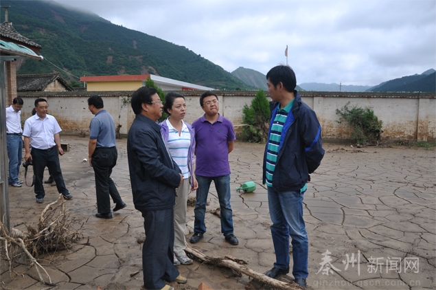 (秦州区外宣办 李保怀)8月8日,中国青少年发展基金会秘书长涂猛,学生资助部部长盛园园一行来秦州区实地查看娘娘坝灾区学校受灾情况。共青团甘肃省委副书记、党组成员蒋小丽,省青少年发展基金会副秘书长张宏伟,共青团天水市委书记王新强,天水市青联副主席安和平,秦州区委常委、组织部长魏胜奎,区政府副区长曹亚玲,共青团秦州区委书记崔峰等陪同视察。