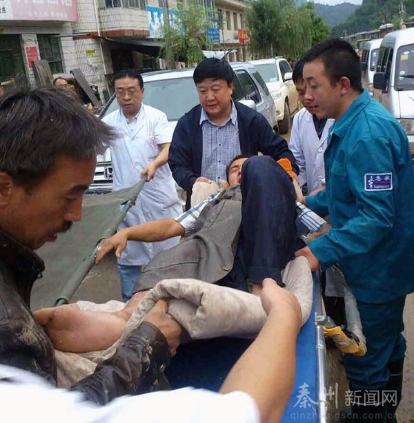张昌江,秦州区王家磨社区卫生服务中心主任, 7月26号清晨,接到上级命令的他,不容多想,更来不及和家中生病正在输液的80多岁的老母亲辞行,冒着夜色匆匆准备好急救箱就出发了,灾情就是命令,一路颠簸,快到娘娘坝才发现自己肚子里空无一物。