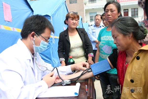 在这次抗洪救灾中,秦州区卫生系统共出动救援救护车辆108台次,医护及防疫人员1080人次,转移伤员23人,在各个安置点上设立了医疗点,由乡镇卫生院医护人员24小时轮班值守,为安置点上的病人提供免费的诊治和医疗咨询服务,对发现的危重病人和急性发作的病人及时转送上级医院诊,共转诊灾区病人33余人,累计接诊安置点病人5008人(次),对灾民的医药费用全部实行免费治疗,免除医药费用12.6万元,有效保障灾区人民的生命健康。