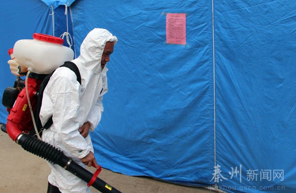 自7月26日至8月12日,逯建存主任每天起早摸黑,带领防疫工作组成员深入各安置点开展各项卫生防疫工作。18天来,在17个安置点设立了以防疫、医疗为主的卫生工作点,制作发放医疗点、防疫点及灾后卫生防疫知识宣传标识牌17套51个,先后累计出动防疫车辆60车次、人员480余人次,为各安置点配发手动喷雾器20个、电动喷雾器1台,防护服40套,雨鞋40双,发放漂白粉1200多公斤、八四消毒液30箱共900瓶、漂粉精片300瓶共30000片,同时开展每天早晚两次安置点帐篷及周围环境的消毒处理及每周一次的杀虫工作,累计消毒194次,消毒面积360924平米,喷洒消毒药液901公斤, 喷洒杀虫药液140公斤、杀虫面积约3500平米,中医防病累计达2956人次。张贴卫生防疫宣传标语1000余张、张贴宣传画2433张、发放灾后卫生防病知识宣传单4728张开展健康宣传教育咨询累计达3670人次,现场接诊达2426人次。开展灾民心理干预200余人次。