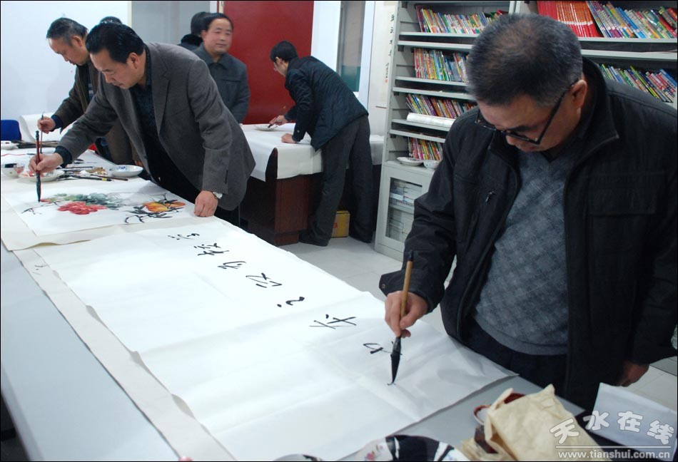 天水市文联“送书画进校园”活动走进回民小学(图)