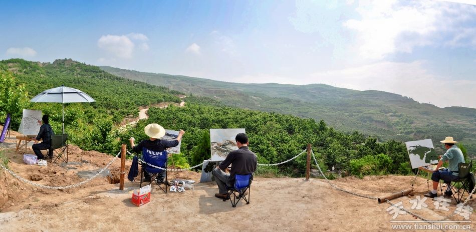 (资料图片:天水在线组织的书画名家走进烟铺大樱桃基地采风活动)