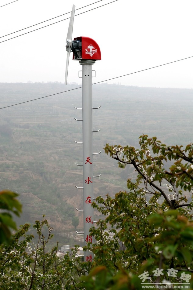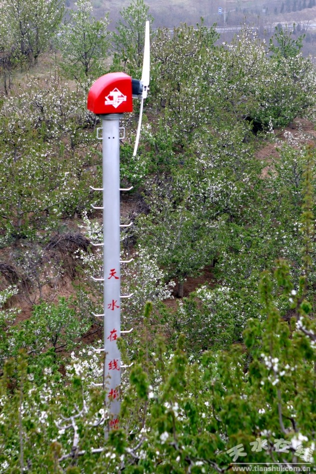 (天水在线向烟铺大樱桃基地捐赠的三台防霜机坚守岗位。)
