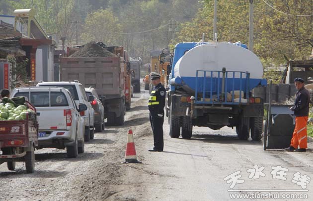 记忆犹新的去年秦州“7·25”暴洪给娘娘坝人民带来了巨大损失,也将通往该镇的国道316线道路造成塌陷裂毁,水毁路段的维修施工目前正在紧张有序的进行。为保障施工路段的畅通安全,天水市秦州郊区交警大队从4月10日起,增派警力,投入施工路段交通疏导工作,落实了各项安管措施。