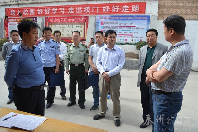5月29日,秦州区委常委、常务副区长李继明,区委常委、政法委书记赵虎生带领维稳、综治、教体、公安、文广、消防、安监、交警、综合执法等相关部门负责人对全区校园及周边治安问题集中整治工作进行了督查指导。