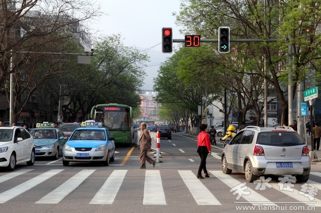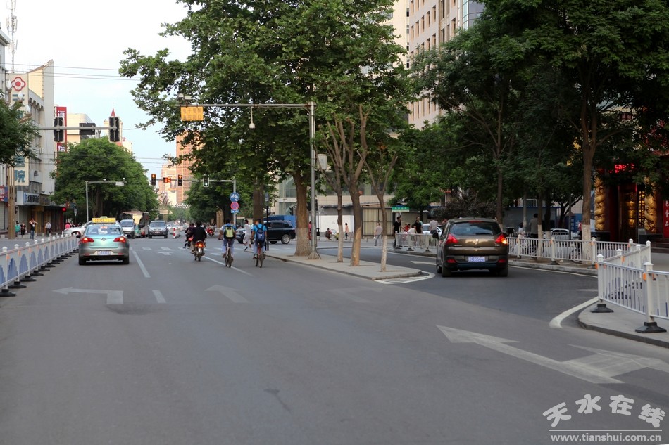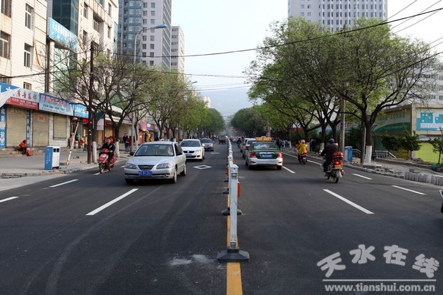(城区部分主干道增设右转弯车道工程。在青年南路、石马坪、合作路等部分城区主干道增设右转弯车道,总投资380万元。目前,青年南路至藉河北路、大众南路至羲皇大道、民主路至合作中路右转弯车道已完工并投入使用,完成投资约190万元。 图为民主路至合作中路右转弯车道 ) |