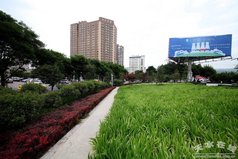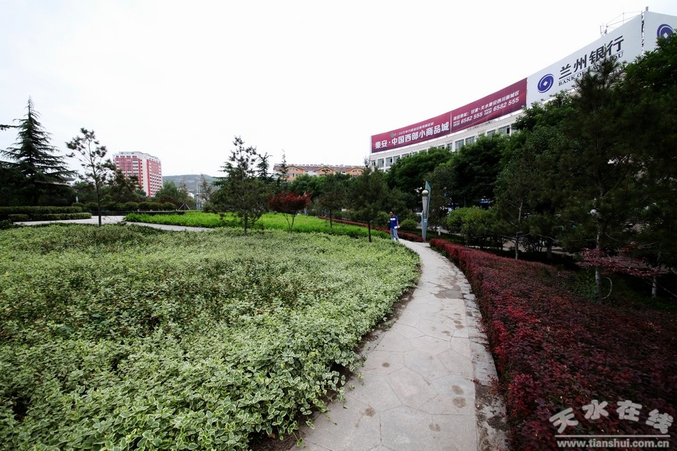 (城区绿化绿景工程。对城区16处自建花坛及40余处公共花坛进行苗木补栽,已全面完工。对东方红路、惠民巷等4条道路进行行道树栽植。累计栽植苗木共30万余株,其中乔木408株、大型花灌木2000余株、小型花灌木29万余株。累计完成投资约485万元。图为兰州银行门前花坛)