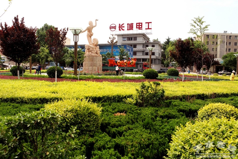 (城区绿化绿景工程。对羲皇大道两侧分车带进行绿化改造,现已全面完工。对城区16处自建花坛及40余处公共花坛进行苗木补栽,已全面完工。对东方红路、惠民巷等4条道路进行行道树栽植。累计栽植苗木共30万余株,其中乔木408株、大型花灌木2000余株、小型花灌木29万余株。累计完成投资约485万元。图为七里墩花坛)