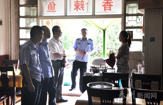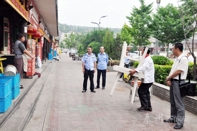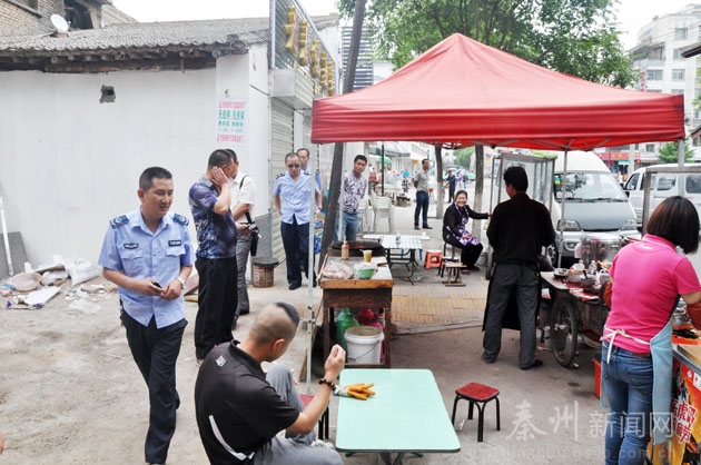 联合工作组对小吃摊点、沿街门店、餐馆等存在占道经营、卫生环境差情况进行一一查看,叮嘱他们要严格落实沿街门店目标管理责任制度,确保街道整洁、无乱贴广告、餐饮垃圾归位,从源头遏制环境脏乱差现象,为伏羲文化旅游节增光添彩。