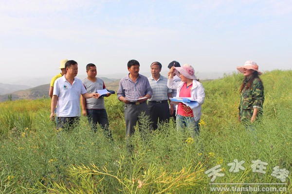 6月4日,天水市农科所研究员雷建明一行5人对秦州区冬油菜高产创建项目进行复测及考核验收。