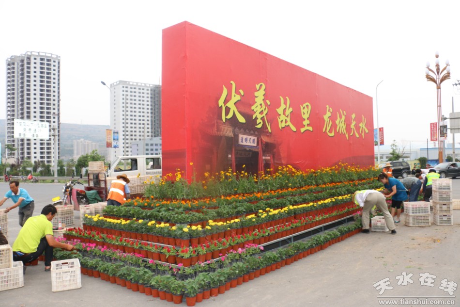 为喜迎2014年甘肃省公祭伏羲大典暨第二十五届天水伏羲文化旅游节的到来,营造和提供氛围浓厚、景观优美的营造浓厚的祭祀和旅游环境,秦州区园林管理处于6月9日全面展开了鲜花上街美化工作。