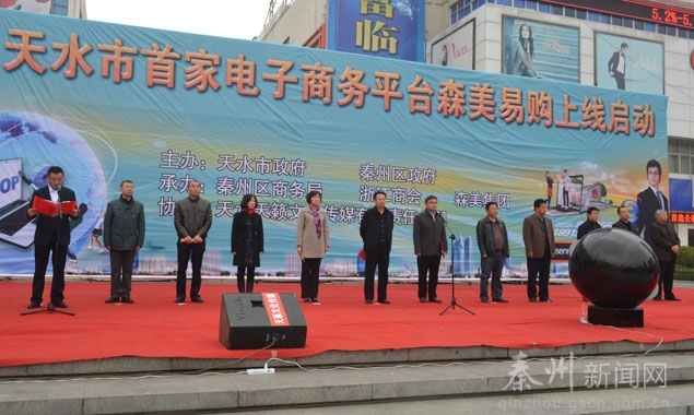(秦州区外宣办)11月8日,天水市首家电子商务平台森美易购上线启动仪式在龙城广场举行。