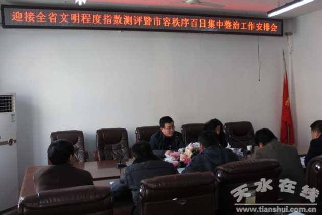 为进一步改善城区环境,提升城市管理水平,根据市、区统一部署,秦州区环境卫生管理处决定从2014年12月10日起至2015年3月19日,集中开展为期100天的环境卫生集中整治行动。12月19日,秦州区环境卫生管理处召开了市容秩序百日集中整治动员会,对城市环境卫生集中整治进行了安排部署。