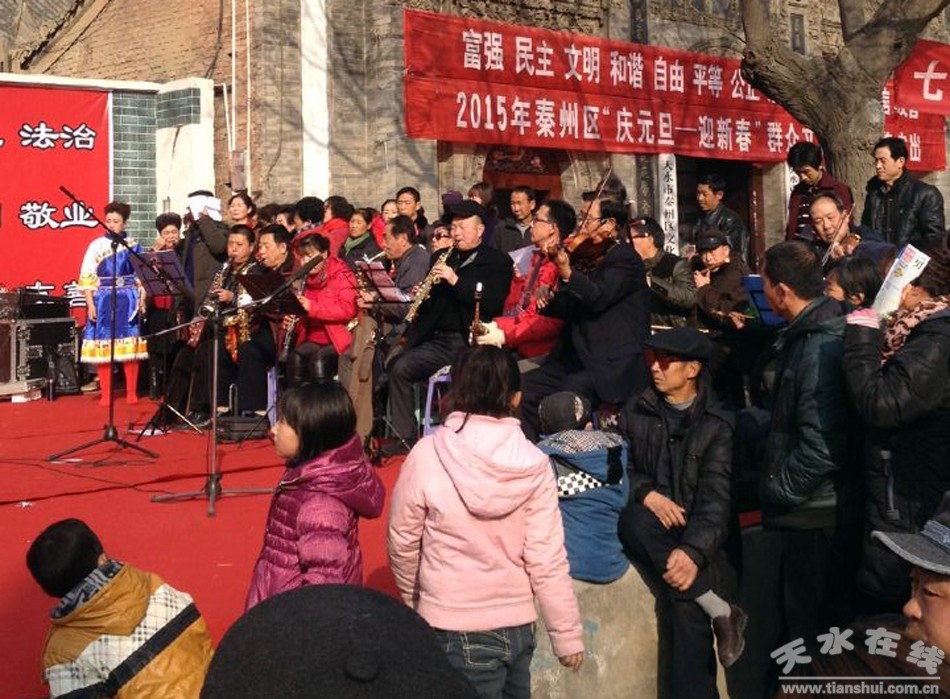 万马奔腾辞旧岁,三阳开泰迎春来。2015年元旦期间,为丰富群众文化生活,营造节日喜庆氛围,由区委宣传部、秦州区文广局主办,秦州区文化馆承办的2015年秦州区“庆元旦——迎新春”群众文化活动文艺汇演在陕省会馆门前拉开帷幕。