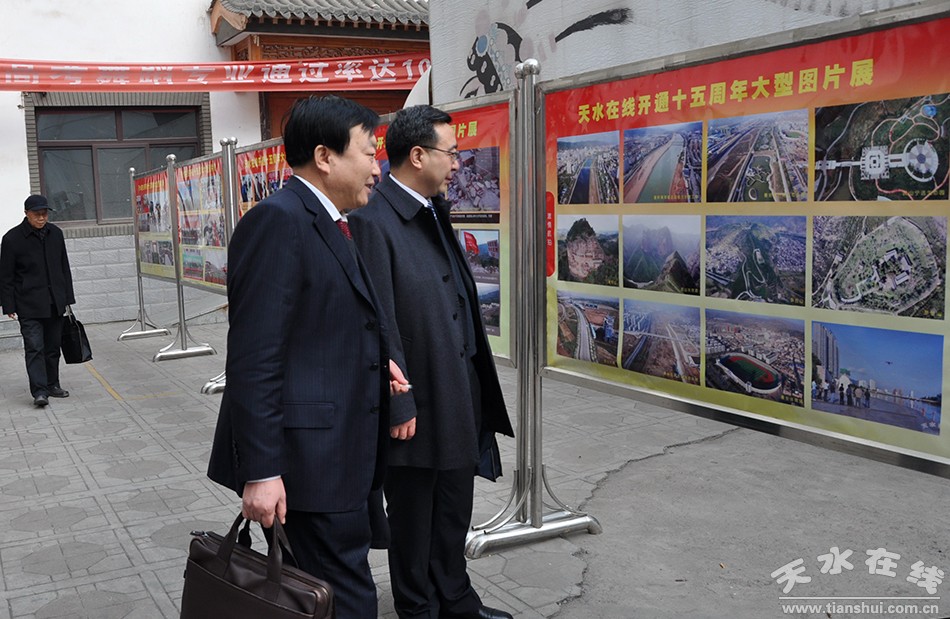 1月15日上午,天水市第六届人民代表大会第四次会议在秦州剧院隆重开幕。在会议开始前,市委常委、副市长、秦州区委书记雷鸣观看了“天水在线成立十五周年大型图片展”。