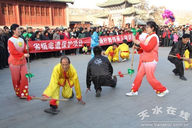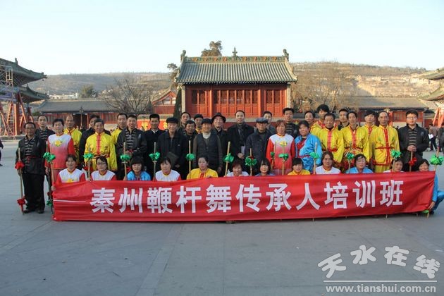 1月19日至21日,由天水市秦州区文广局主办,天水市秦州区文化馆承办、天水市秦州区秦岭乡综合文化站协办的省级非物质文化遗产保护项目秦州鞭杆舞传承人培训工作在区文化馆、秦州区百姓大舞台,秦州区天天艺术培训中心舞蹈厅以及伏羲庙广场进行,此次培训活动为期三天。