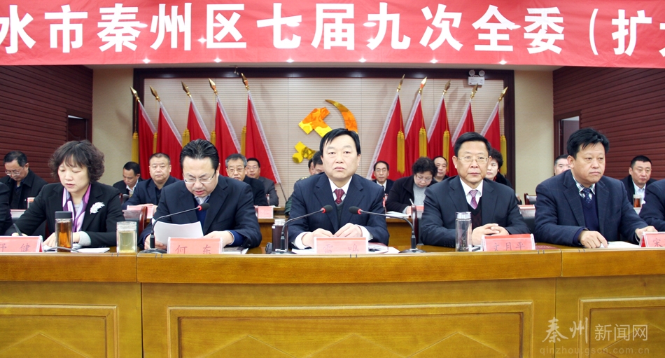 (秦州区外宣办 裴振刚 辛志锋)2月10日上午,中共天水市秦州区委七届九次全委(扩大)会议隆重召开。本次会议的主要任务是认真落实中央和全省经济工作会议精神、市委六届八次全委(扩大)会议暨全市经济工作会议精神,总结2014年全区工作,深入分析当前形势,明确2015年及今后一段时期全区经济社会发展的总体思路、目标任务和战略重点。动员全区各级各部门进一步解放思想,坚定信念,锐意进取,务实工作,全力促进经济社会转型发展,加快推进全面小康社会进程和全市“核心区、带头区”建设步伐。