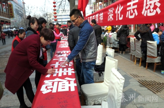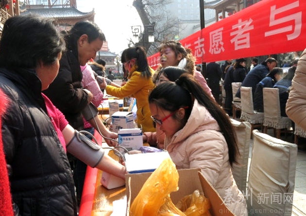 3月5日上午,团区委组织司法、公安、工商、卫生、环保、医疗、高校等青年志愿者队伍来到中华西路步行街,开展免费医疗、法制宣传、政策宣讲、书画交流、卫生打扫等志愿服务。青年志愿者队伍共向群众发放各类宣传单20000余份,免费为一百余位群众量血压、诊断常见病,悉心为群众进行本单位相关业务介绍和政策解读。活动现场人头攒动,气氛热烈。在活动过程中,团区委深入青年群体,与广大青年面对面,传播和弘扬雷锋精神,宣传社会主义核心价值观。