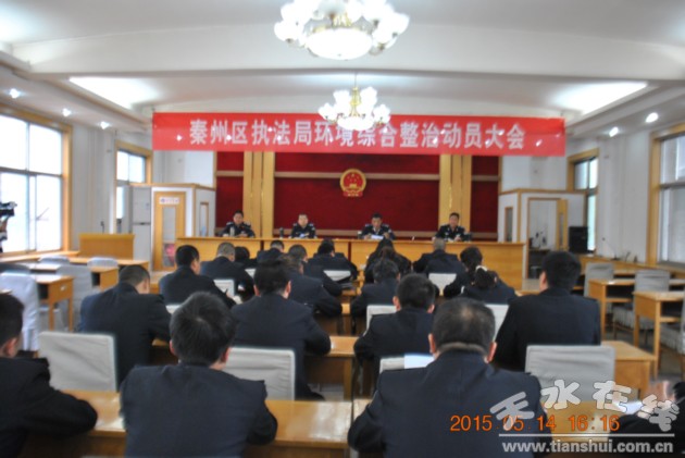 为了积极贯彻落实秦州区委、区政府关于在全区范围内开展城乡环境综合整治会议精神,为“伏羲文化旅游节”、“环湖赛”及“秦州大樱桃”推介会的成功举办营造良好环境,5月14日,秦州区城市管理行政执法局召开了环境综合整治动员大会,班子成员、各股室、中队负责人及机关全体参加了会议。