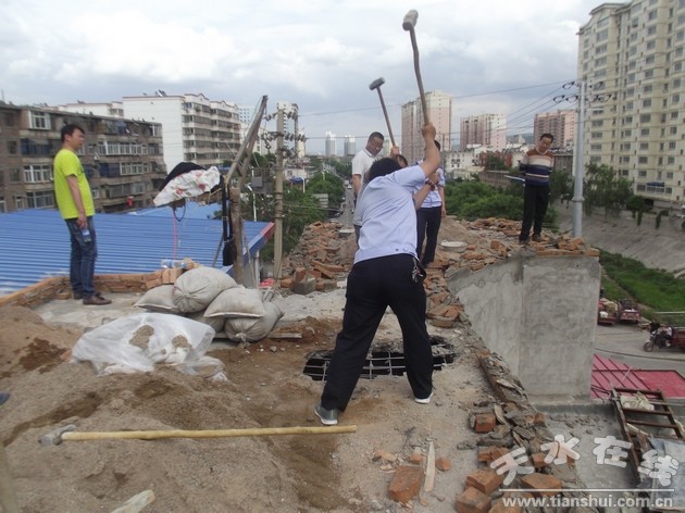 但当事人抱有侥幸心理,不但未按要求拆除,还利用中午和晚上的空挡时间加紧施工,一夜之间对加盖的第三层房屋完成了封顶。执法人员发现后耐心地向当事人做思想工作,讲解相关法律法规,动员当事人自行拆除消除影响。但是当事人在规定的期限内并未拆除。6月1日下午,中队组织全队执法人员对姚某擅自建设的房屋依法进行拆除,拆除面积共计50平方米。
