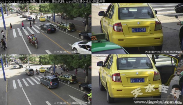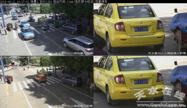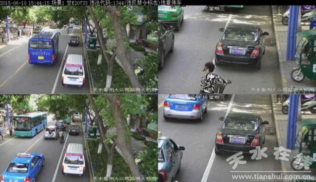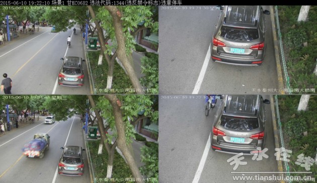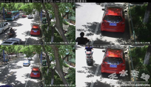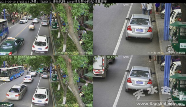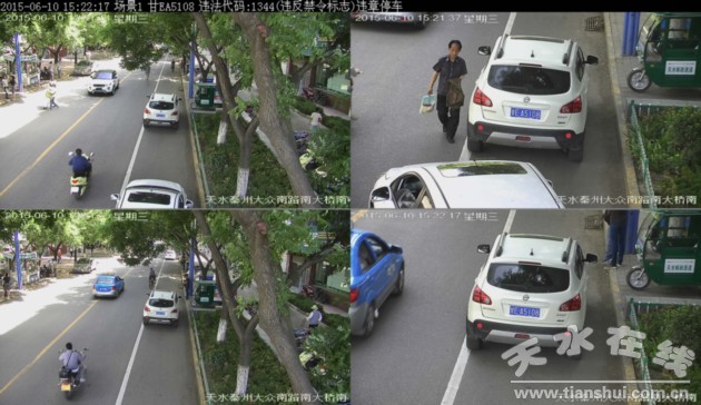 ▲甘ET1359于2015年6月11日在秦州区大众南路南大桥南违法停放,依据《道路交通安全法》违反禁令标志处200元罚款记3分。