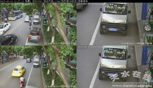 ▲甘E53263于2015年6月10日在秦州区大众南路南大桥南违法停放,依据《道路交通安全法》违反禁令标志处200元罚款记3分。