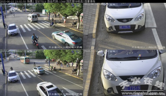 ▲甘E77519于2015年6月10日在秦州区大众南路南大桥南违法停放,依据《道路交通安全法》违反禁令标志处200元罚款记3分。