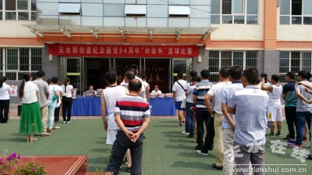 “七一”来临之际,天水郡街道党工委积极组织辖区党员干部群众开展形式多样的活动,庆祝党的94岁生日。6月18日上午,街道纪念建党94周年“和谐杯”篮球比赛在秦州区安宁小学篮球场拉开序幕。来自辖区的天秦州区安宁小学、甘肃煤田综合普查队、秦州区人民武装部等8支代表队将展开为期两天的激烈角逐。