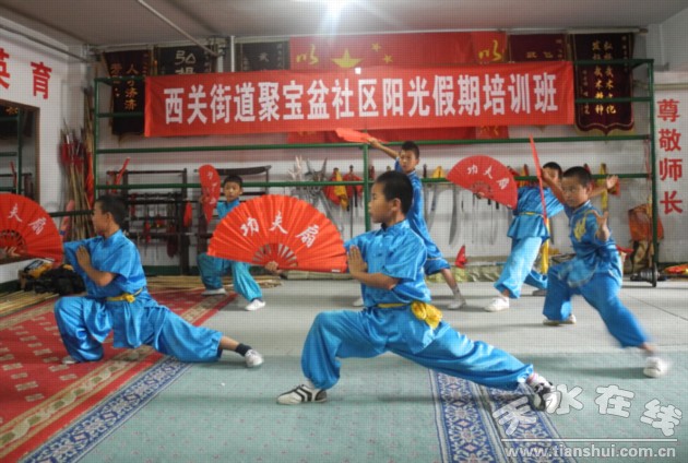 五、举办“阳光假期”武术培训班。社区组织辖区飞将武校、尚武功夫学校为辖区中小学生开展了武术培训,培养了孩子对传统武术的兴趣,增强了身体素质,受到广大家长的称赞。