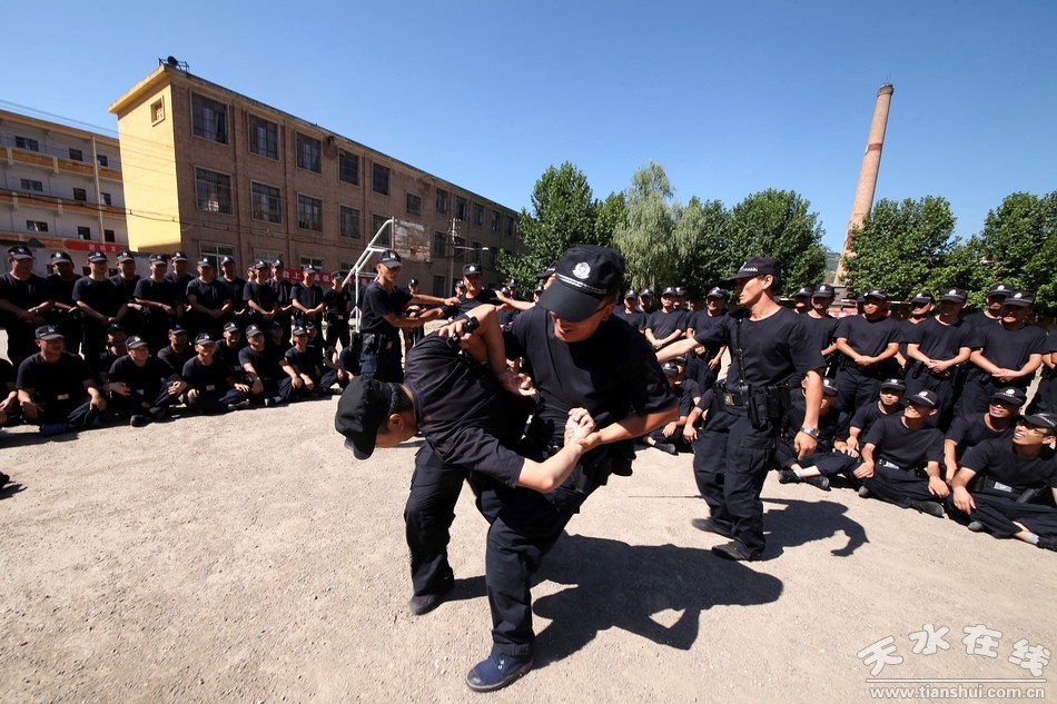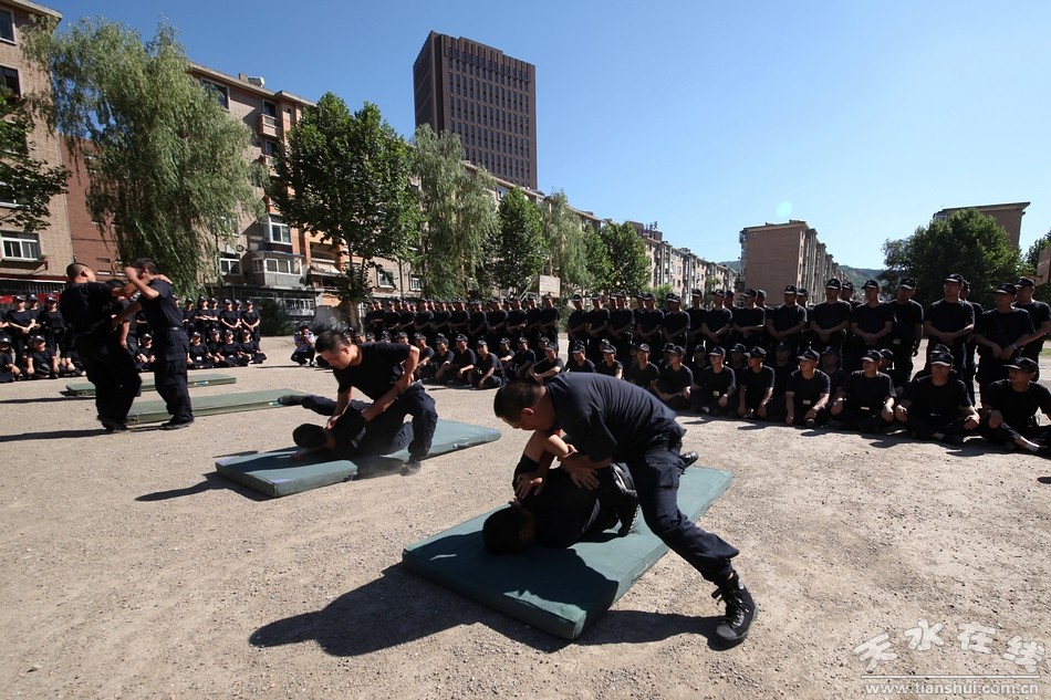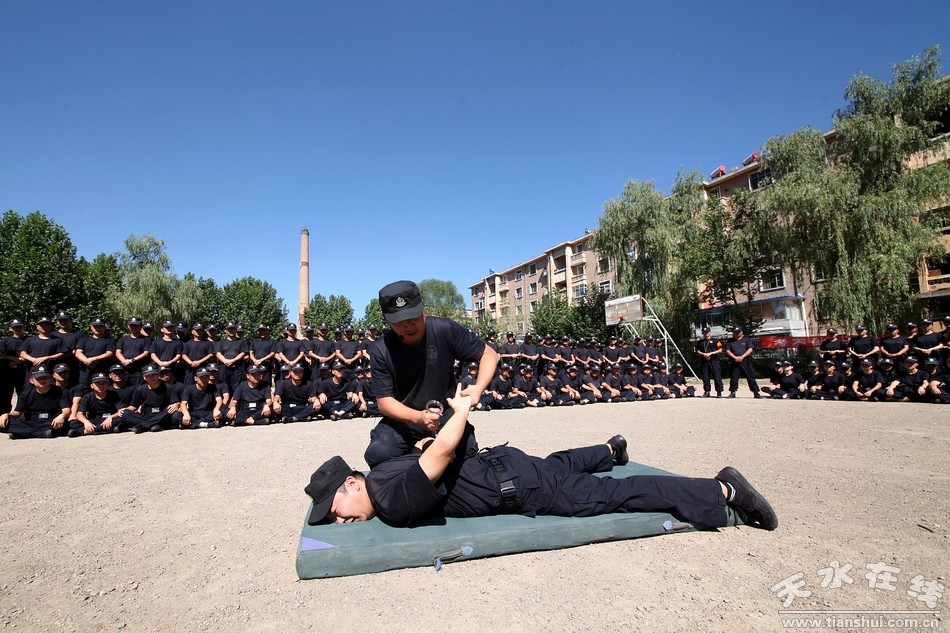 8月14日,天水市公安局秦州分局新选拔的基层警察正在进行全封闭式训练。