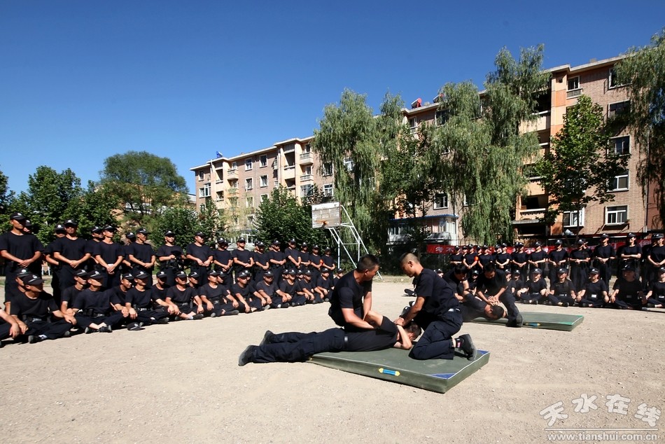 8月14日,天水市公安局秦州分局新选拔的基层警察正在进行全封闭式训练。 |