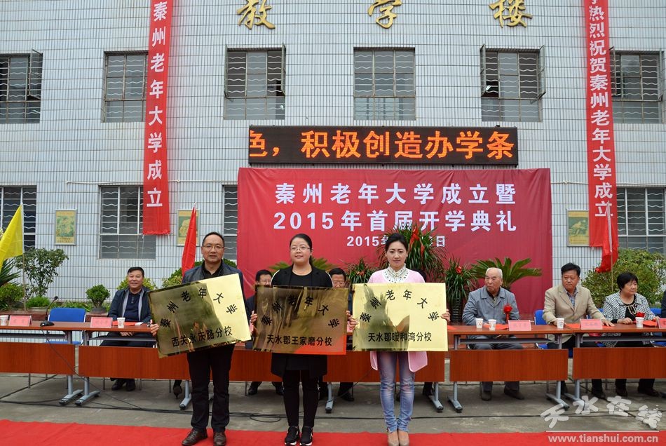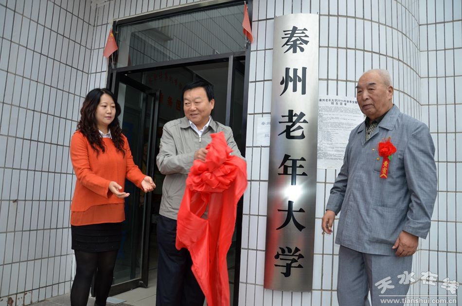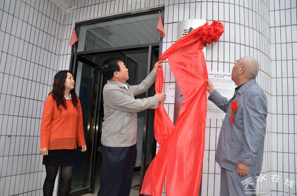 市委常委、秦州区委书记雷鸣,市老年大学校长张子芳为秦州老年大学揭牌
