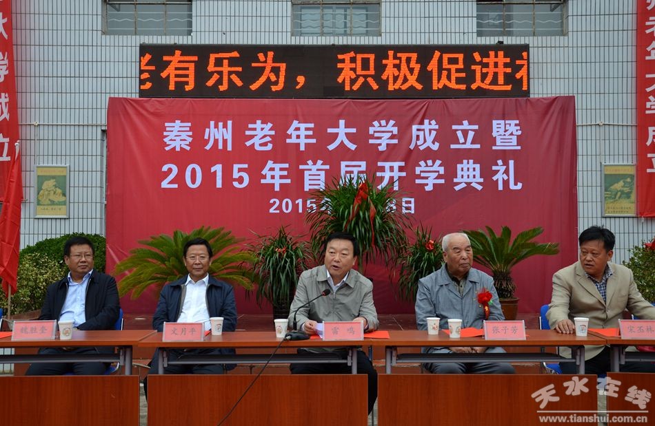 9月28日上午,秦州老年大学成立暨2015年首届开学典礼隆重举行,市委常委、秦州区委书记雷鸣出席典礼并为老年大学揭牌。