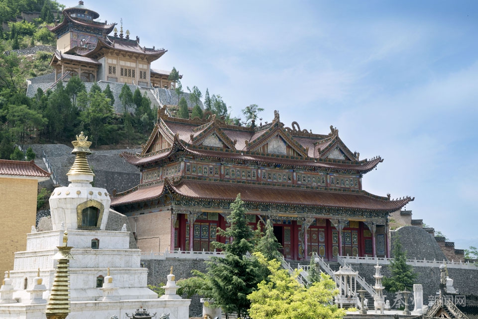 新建寺庙占地11.2万平米,建有5000余平米殿堂。炳灵寺山门为牌坊式建筑,面阔三间,宽3米高10米;寺内八座殿宇分列五院,前院主殿为天王殿,两侧为钟、鼓楼;中院主殿为大雄宝殿,两侧为东配殿(地藏殿、伽蓝殿)和西配殿(观音殿、文殊菩萨殿),西院建万尊文殊菩萨和藏经楼;上三院为圆觉殿,圆觉殿东侧为时轮塔和大威德殿,西侧为五方佛塔;最高处即为宗喀巴大法王殿。寺西有山,形如卧佛,为自然造化,寺前九山环拱,俗称“九品莲台”。寺内五方佛塔造型奇伟,名著陇上;万尊文殊宝塔,神秘典雅,其上日月塔尖传为“空中显圣”之物,殿内共有缅甸请来的玉佛33尊,铜铸鎏金佛10808尊,内藏经书100余部,数千册之多,有佛门逸山、传印、贡唐仓、茗山等高僧大师墨宝。每年农历四月初八浴佛节法会,规模盛大,来自全国各地上万人赴会敬香,香烟缭绕,经声不断,场面极为壮观。