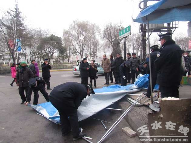 在道路交通秩序综合整治中,秦州区执法局把维护公交站台周边秩序作为重点工作之一,日常管理与集中整治相结合,严查摊点挤占公交站台行为,切实保障广大市民安全上下车、公交车顺利进出站。1月8日上午,秦州区执法局集中执法力量,对藉河北路市中医院公交站台乱设摊点进行了集中整治。