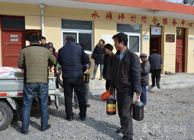 (为贫困户发放米、面、油)