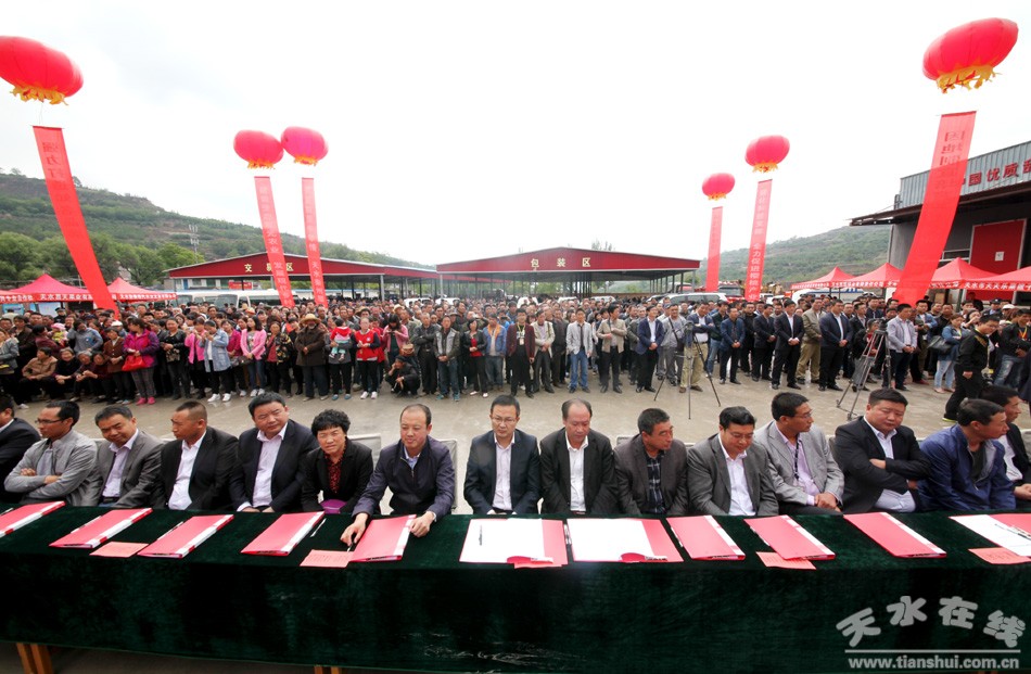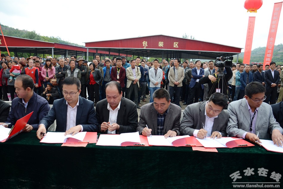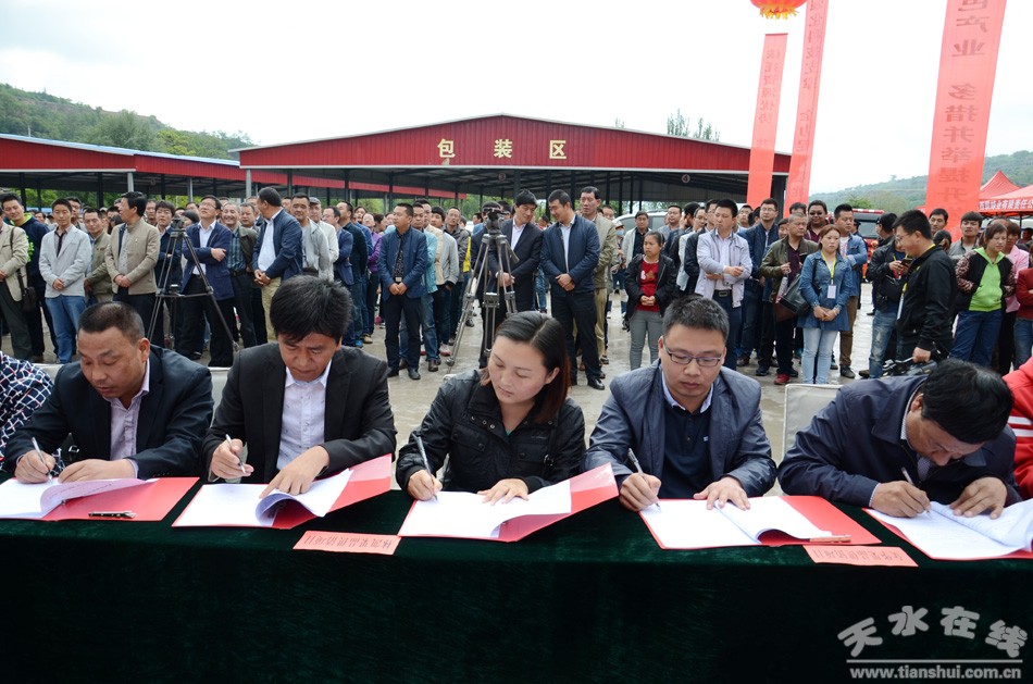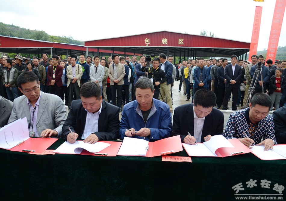 当日,还进行了招商引资项目签约活动,经过前期积极洽谈,多次协商与对接,天森文化创意园建设,现代生态循环农业示范园建设等4个招商引资项目现场进行了签约,天水仲林果品公司和成都金德园电子商务有限公司,天水绿之源公司和中果在线等10个果品营销合作项目签约,以及天水鼎高电子、天水联益农业与顺丰天水分公司开展的果品物流合作项目,共16个签约项目,总投资9.2亿元。
