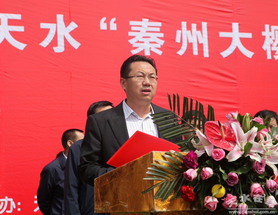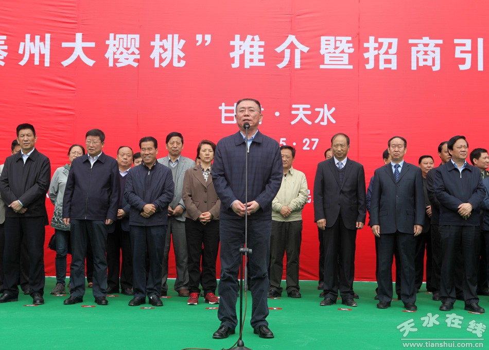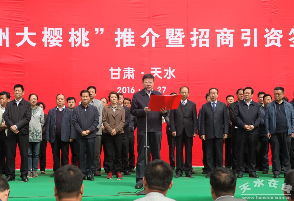 (天水市委书记王锐宣布天水“秦州大樱桃”推介暨招商引资签约洽谈活动开幕)