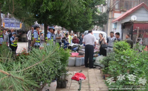 由于原东桥头花鸟市场的迁移,坚家河市场容量有限,导致市场南北口市场外溢、摊点占路为市、交通秩序混乱、周边环境卫生“脏、乱、差”、“肠梗阻”的问题事关民生,备受市民关注,留言板反复投诉。节会前夕,执法局以“2016年伏羲文化旅游节”为契机,实地研判,详细分析市场南口秩序混乱的主要原因,决定把清理人行道上2处乱摆乱放的花卉、杂物作为整治重点,以点代面彻底疏通道路、治乱治脏。