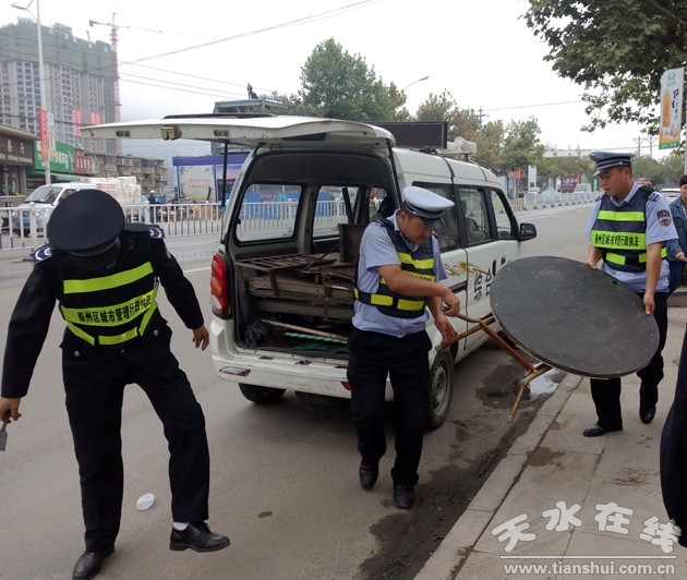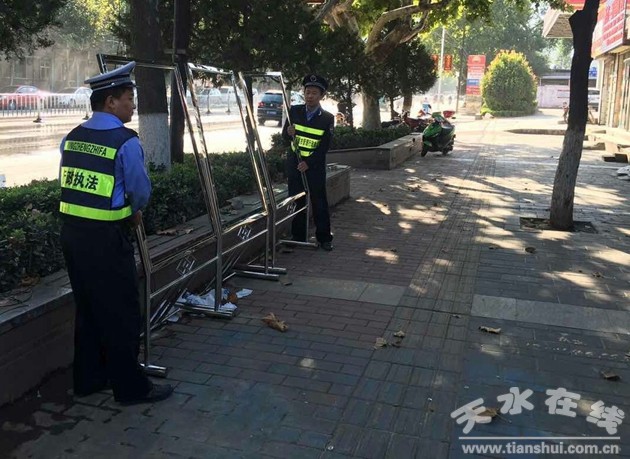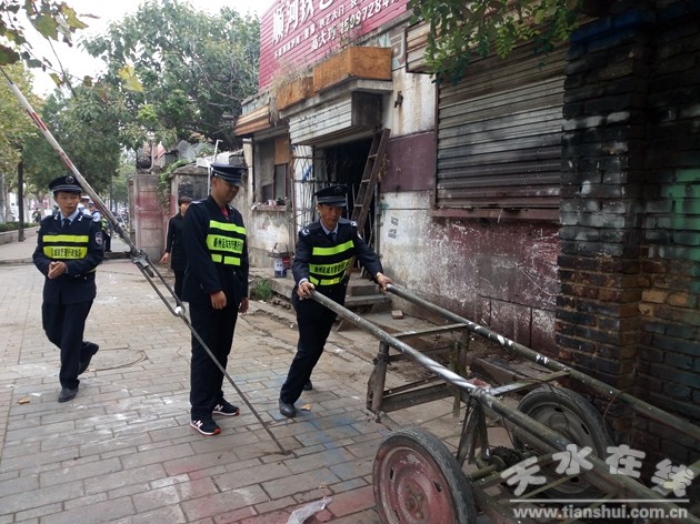 9月21日,随着50名执法人员对秦州区岷山路逾期未整改和屡教屡犯的7家占道作业经营户实施取缔,依法暂扣占道作业工具11套,清理乱堆乱放铁艺护栏、铝塑门窗、建筑材料等2车,岷山路占道作业治理示范街打造工作正式拉开序幕。
