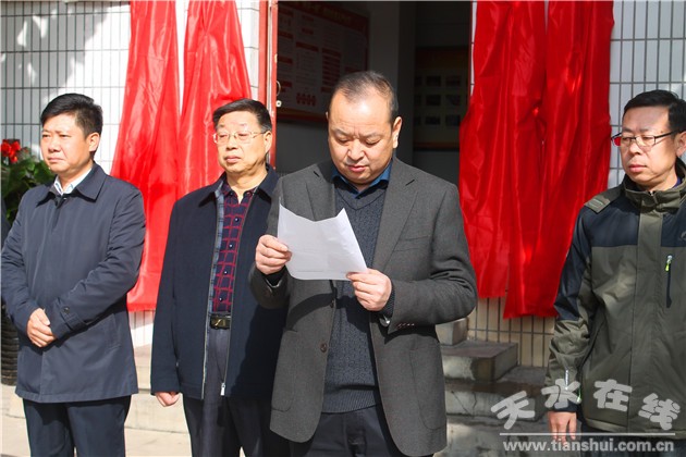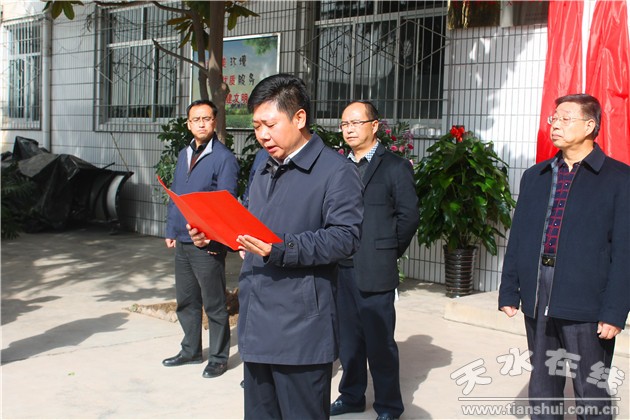 (秦州区住建局副局长范奇斌宣读了《天水市机构编制委员会办公室关于秦州区环境卫生管理处更名的批复》)