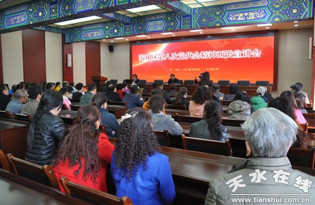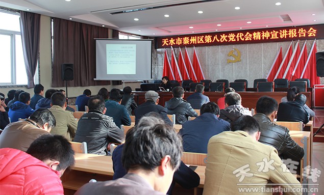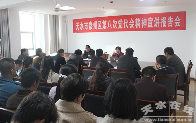 (秦州区外宣办)为把区第八次党代会精神学习宣传引向深入,10月28日起,秦州区集中安排一个月时间,采取举办宣讲报告会、专题辅导等形式,在全区迅速掀起了学习高潮。