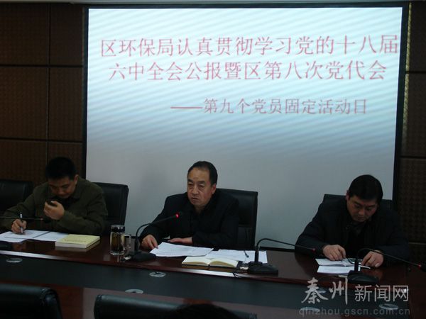 11月4日下午,按照中央、省、市、区的安排部署,秦州区环保局及时召开党员大会,传达学习贯彻党的十八届六中全会暨区第八次党代会议精神,研究部署区环保局贯彻落实学习工作。
