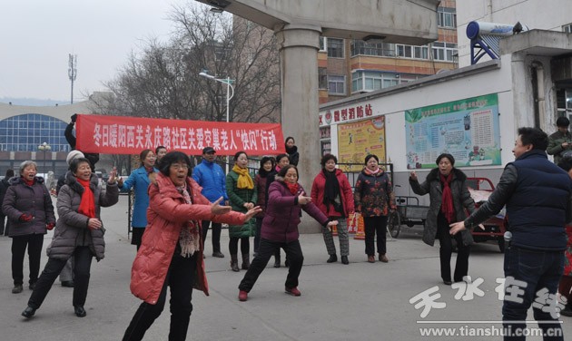 在新年来临之际,西关街道别出心裁举办了一场关爱空巢老人“快闪”活动,现场热闹非凡,来自社区的中老年志愿者演唱了“最美不过夕阳红”、“月亮代表我的心”、“茉莉花”等歌曲,伴着美妙的歌声,越来越多的老年人加入进来,逐渐聚拢成一支近二十人的“快闪”队伍,引来众多市民驻足围观,他们纷纷举起手机、相机记录下这惊喜的一幕。