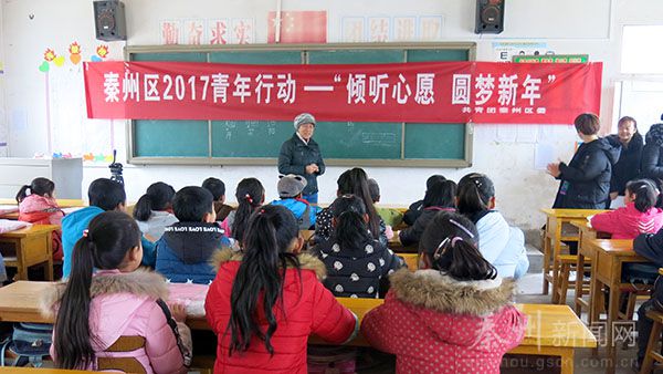 12月30日,团区委联合爱心企业龙摄影新人世界青年志愿者们开展2017青春暖年行动暨“倾听心愿 圆梦新年”活动,先后走进藉口镇中心小学、天水镇中心小学,帮助孩子们实现新年愿望。