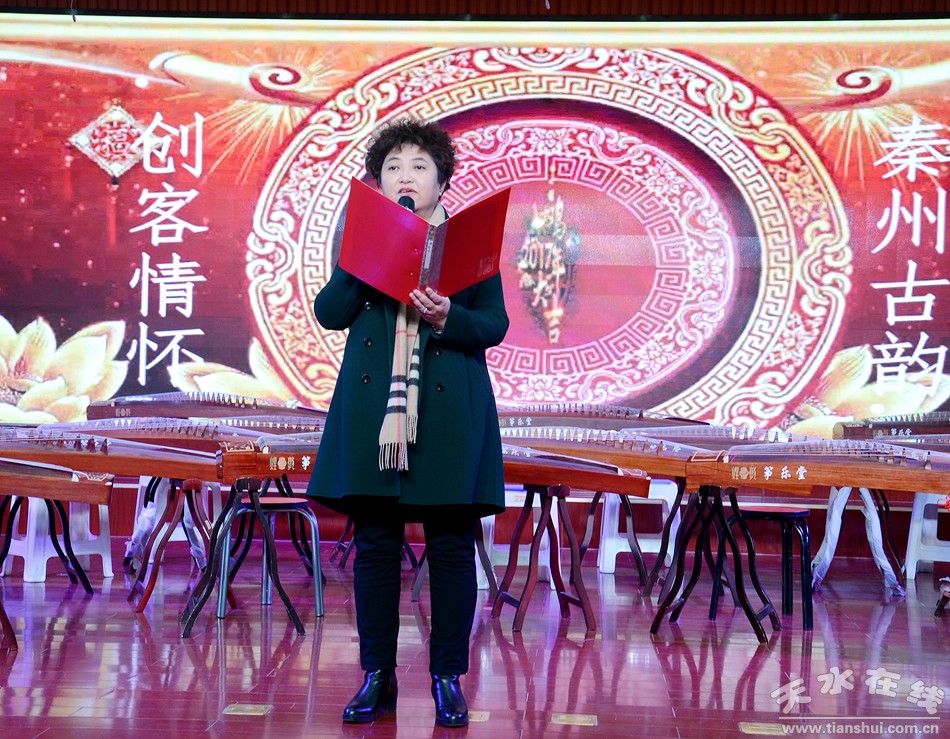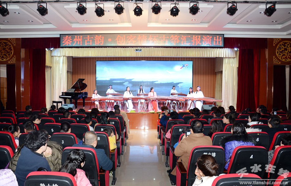 1月18日晚8点,由秦州区委宣传部、区文广局、区文学艺术界联合会、区老干局联合主办,天水66号文化创意园、天水市悠扬文化创意有限公司承办的秦州古韵·创客情怀古筝汇报演出在天水市老干部活动中心隆重举行。天水市委常委、副市长李晓东,秦州区委常委、宣传部部长曹亚玲,秦州区政府副区长汪晓娟、秦州区文广局局长秦毅敏等领导莅临本次演出现场。