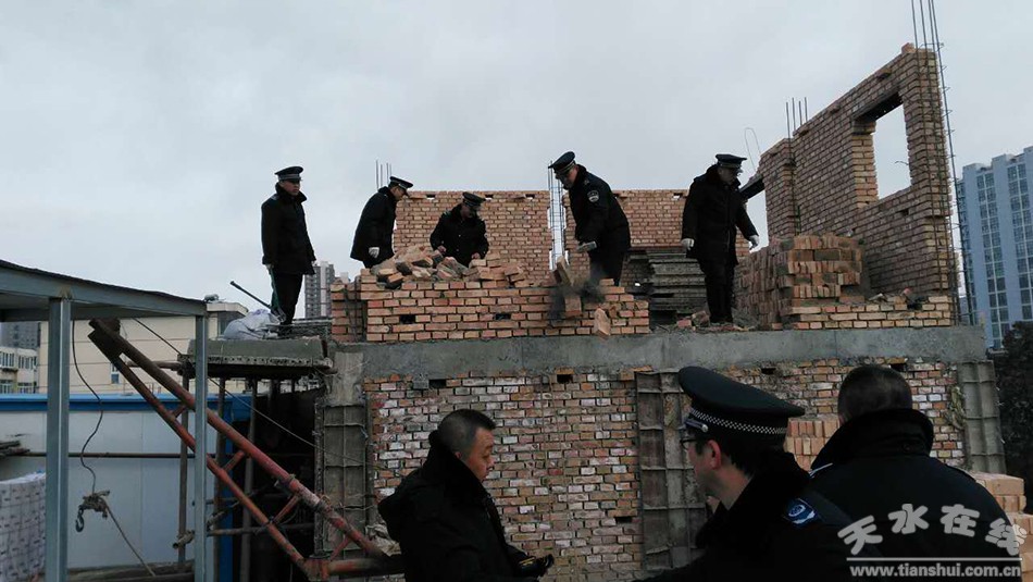 随着年味越来越浓,年关将至。人流量多、商品销售供应量大、城区摊点和车辆成倍增加、外出务工人员集中返乡,管理难度急剧增大,市容环境乱差的治理进入最艰难、最难管的时期,执法局班子成员统筹兼顾,精心组织,靠前指挥,负重前行,不余遗力地守好点、控好面地做好节日期间的市容整治。单位全体取消休假,全体执法队员延长上下班时间,不畏严寒,风餐露宿,夜班延续到22时,全天候群防死守清理店外经营、管控占道经商、规劝流动摊点、规范车辆乱停放、清洗和取缔乱涂写及擅自设置横幅、彩旗、充气物等其它悬挂物,拆除主街道乱栓乱挂、乱搭乱建、违规设置的广告牌、宣传品;实施监控查处违法建设。