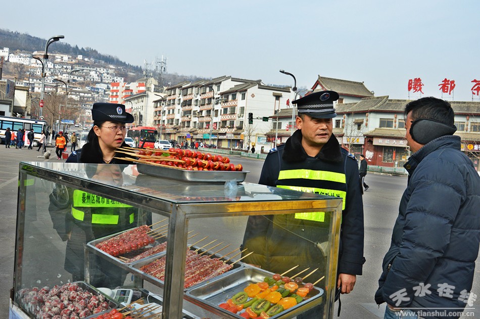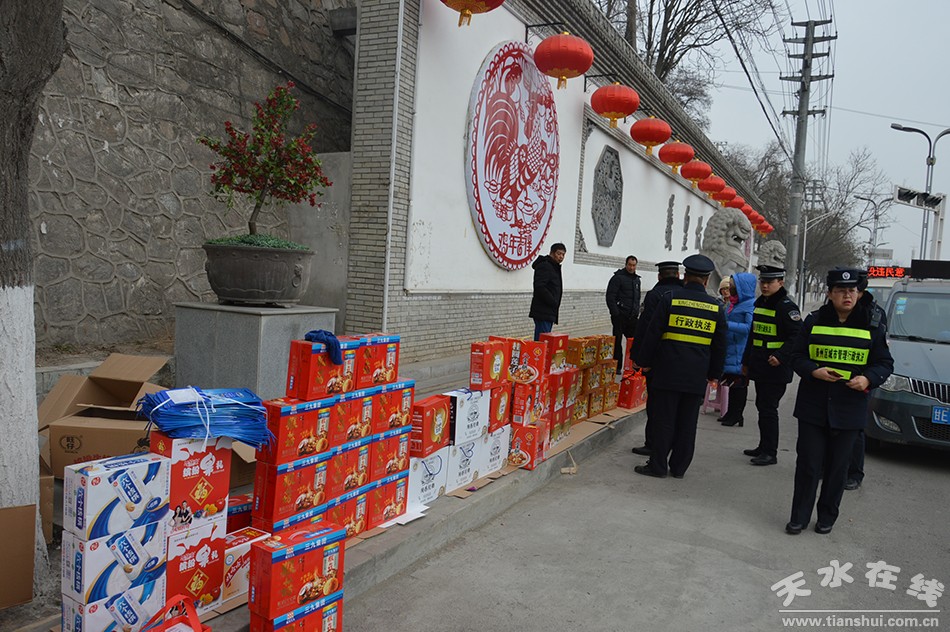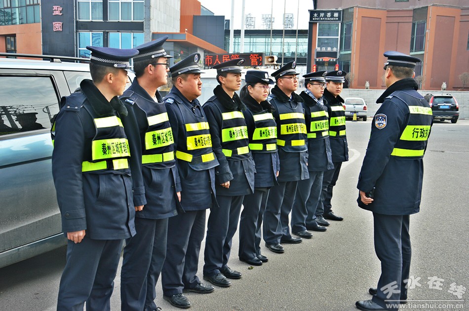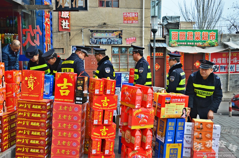 迎来新年的第一天的晨曦,秦州区城市管理行政执法局的执法队员为了全市人民过一个欢乐祥和的春节,放弃了休息,放弃了与家人团聚的日子。各个中队坚守岗位,周密部署,明确工作重点,实行中队负责人带班制,合理调配执法队员和车辆,做到路上全面巡查,及时处理各类店外经营、摊担占道、乱停乱放等各种违规现象进行规范治理。执法队员本着文明执法、依法行政,严格执法与热情服务相结合,不畏严寒、兢兢业业坚守一线,全力做好市容市貌的保障工作。