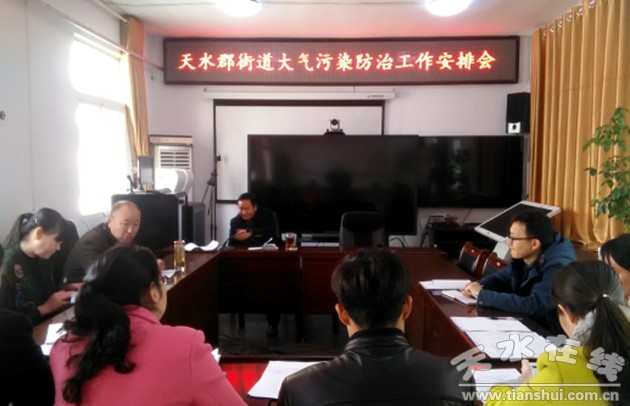 2月18日下午,天水郡街道召开2017年大气污染防治工作安排会,会议由街道党工委书记主持,街道安监站、环保站、各社区主任参加,会议传达学习了秦州区2017年2月18日上午大气污染防治工作会议精神,并对全街道大气污染治理工作进行全面安排部署。